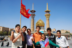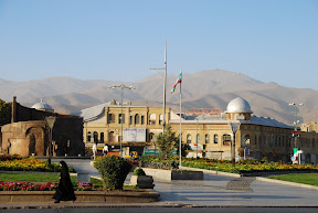 Nedá se nic dělat, na nádraží už víc nepořídím, beru tedy taxi za dolar do centra, kde bych rád našel nějaké levný a dobrý hotel. Nijak zvlášť se nedaří ani jedno. Z prvního mě pouze farsí mluvící chlapík vyhazuje, patrně neberou cizince, nebo měli plno a nebo to vůbec nebyl hotel, páč veškeré značení bylo pouze v perštině. Tyto mosaferhúne jsou v první řadě určené pro místní a tomu odpovídá většinou i cena a také zmíněné značení. Beru tedy vedlejší Farshi GuestHouse, pokoj bez sprchy za 100 tisíc riálů. Na nějaké smlouvání se tu nehraje, chceš nebo nechceš. Jsem docela out, takže dávám pauzu se startem kolem desáté, kdy na náměstí právě začíná nefalšované propagandistické divadlo.