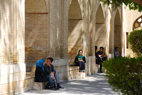 Kluci mají pohodu, v Shiraz na rozdíl ode mě mají k dispozici ještě den, takže se rozdělujeme. Beru taxi (10 000 IRL) k hrobce básníka Háfeze. Vstupné zde asi nějaké bude, ale nikdo po mě nic nechce. Další z mnoha příjemných míst, je to taková oáza klidu plná stromů a květin, s bazénkem uprostřed. Vládne se zde velmi příjemná, pohodová až mystická atmosféra. Celou dobu kolem mě krouží místní kočka, teda slečna, až jsme si říkal, že to nebude náhoda. Nebyla, tak dlouho se osmělovala, až se osmělila mě oslovit. Krásná studentka malířství, která ale neví kde je ČR a ani jí to vůbec nic neříká:-(.